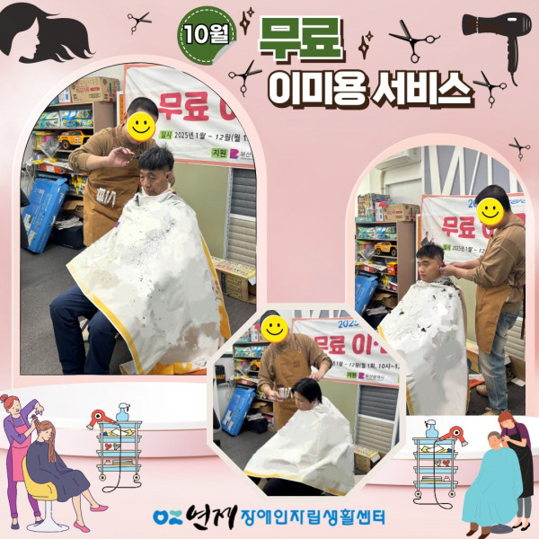 2025년 10월 무료 이미용 서비스 ♥♥ 페이지 정보 작성일 25-10-23 15:11 본문 2025년 10월 무료 이미용서비스일시: 2025년 10월 23일 (목) 10:00~12:00장소: 연제장애인자립생활센터 교육실 목록 이전글지역사회 캠페인-5회차 ♥ 25.10.27 다음글뉴스포츠 자조모임 13회차 ♥ 25.10.23