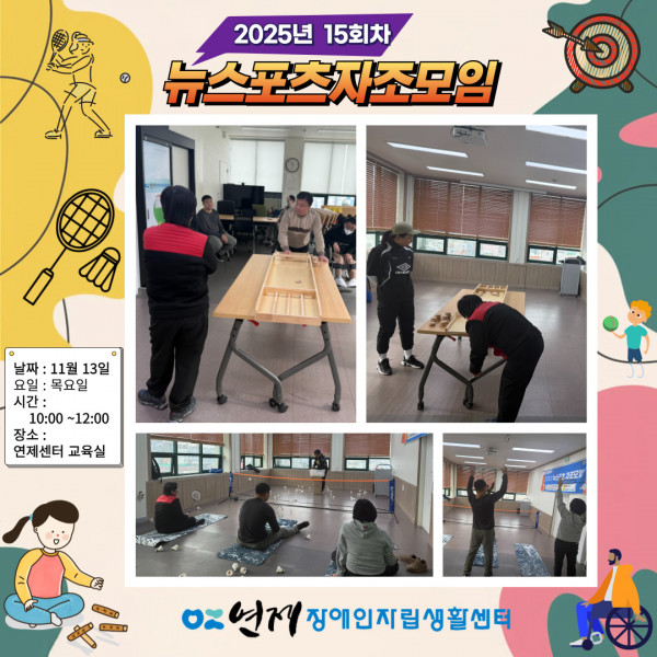 뉴스포츠 자조모임 15회차 ♥ 페이지 정보 작성일 25-11-18 13:54 본문 뉴스포츠자조모임 15회차장소 : 연제장애인자립생활센터 교육실날짜 : 11월 13일요일 : 목요일시간 : 10:00 ~ 12:00 목록 이전글지역사회 캠페인-8회차 ♥ 25.11.18 다음글2025년 자립역량강화 ILP 『전지적 자립생활 시점』 9회차 25.11.13