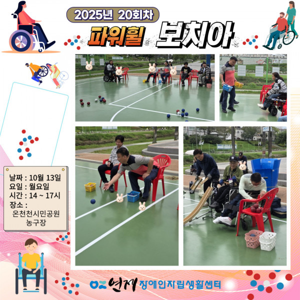 파워휠 보치아 정기모임 20회차 ♥ 페이지 정보 작성일 25-10-13 16:45 본문 파워휠 보치아 자조모임 20회차장소 : 온천천시민공원 농구장일시 : 10월 13일(월) 14:00 ~ 17:00 목록 다음글지역사회 캠페인-3회차 ♥ 25.10.13
